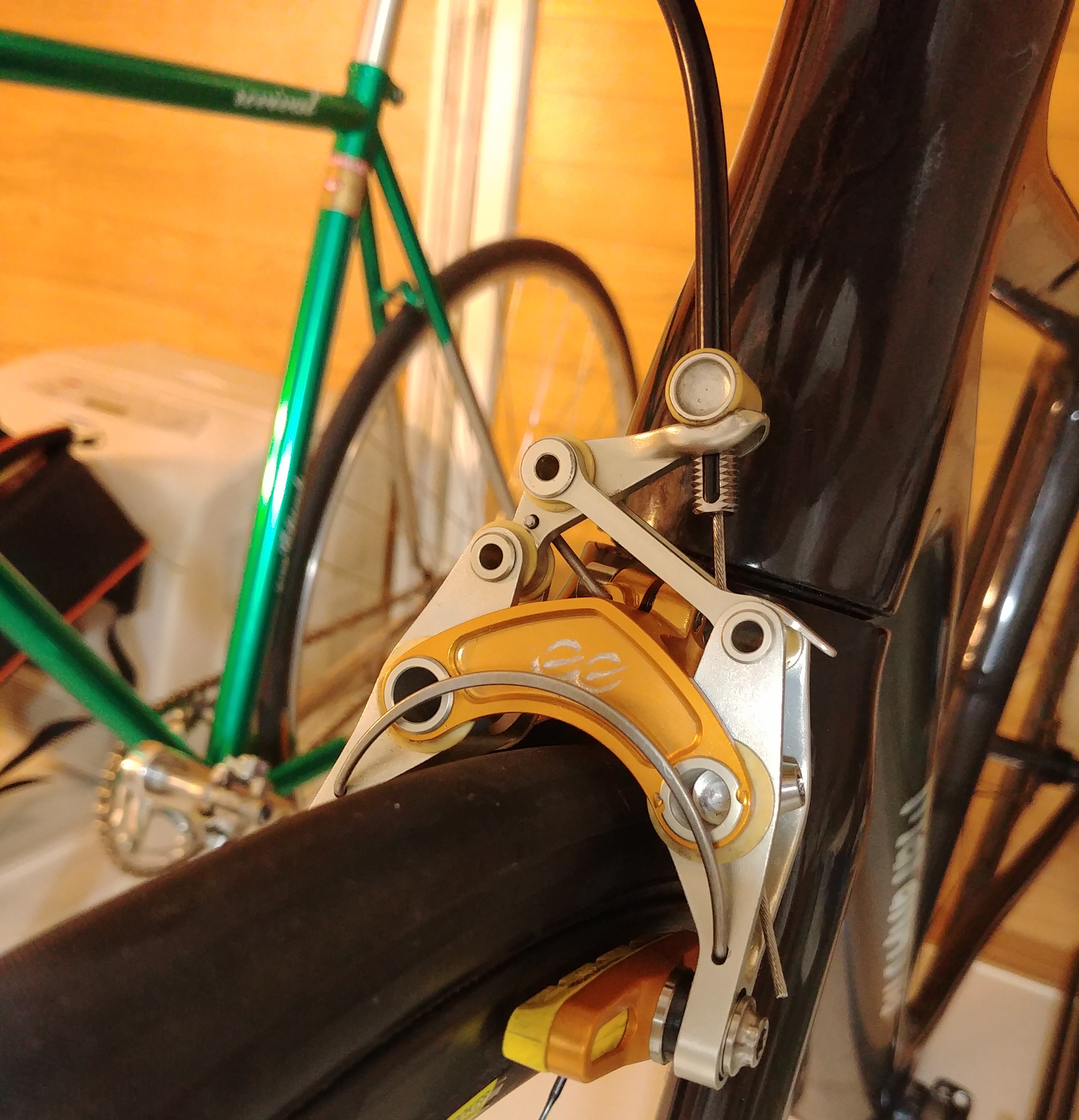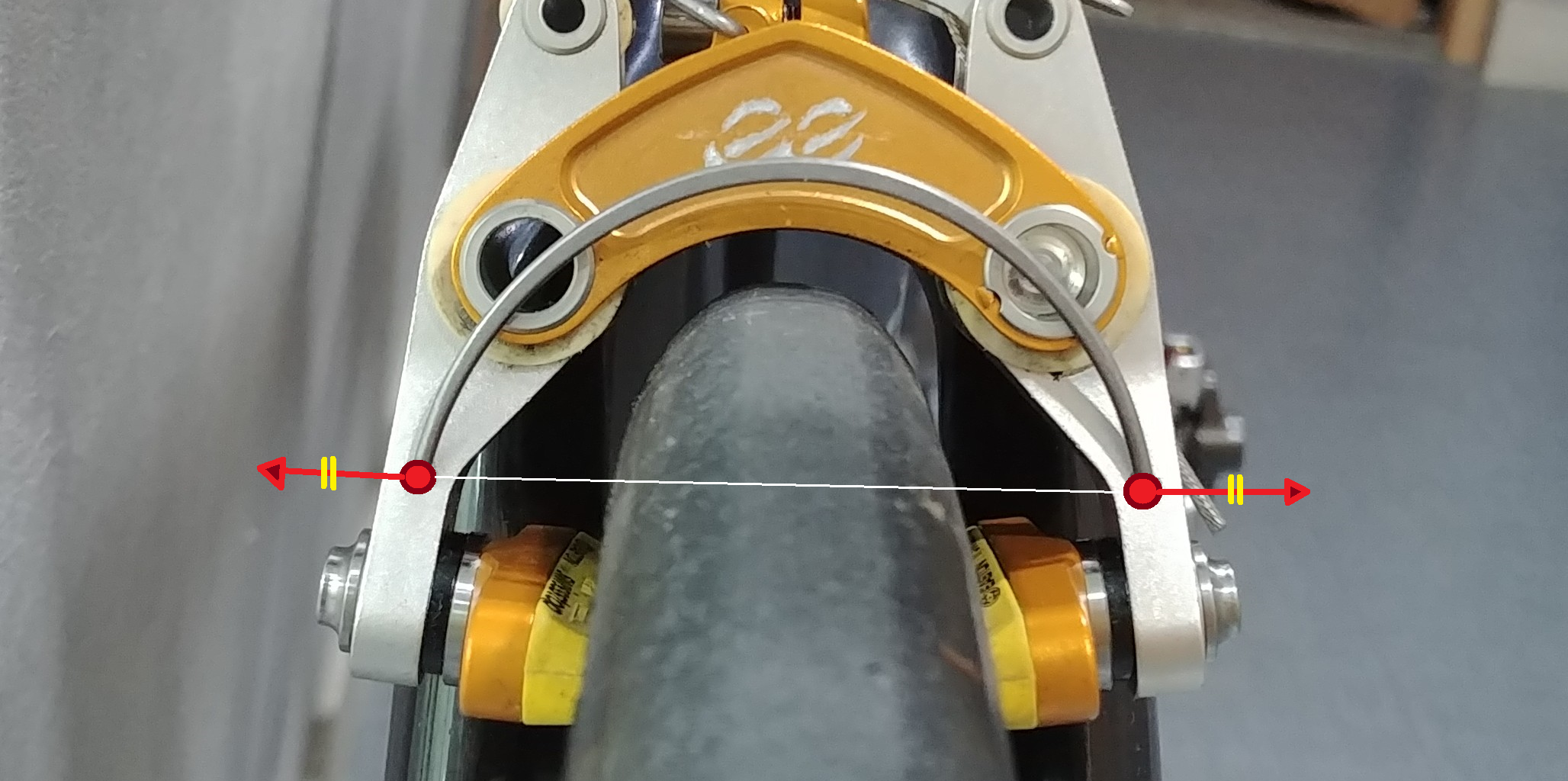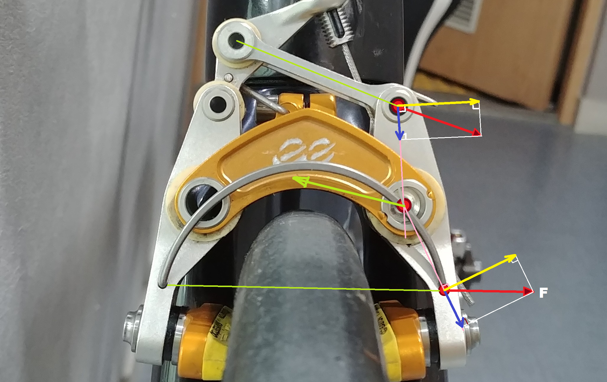 그래서 이상적으로는 브레이크 암의 회전축이 가능한 림의 폭과 일치하는 것이 효율적임을 알 수 있습니다.
