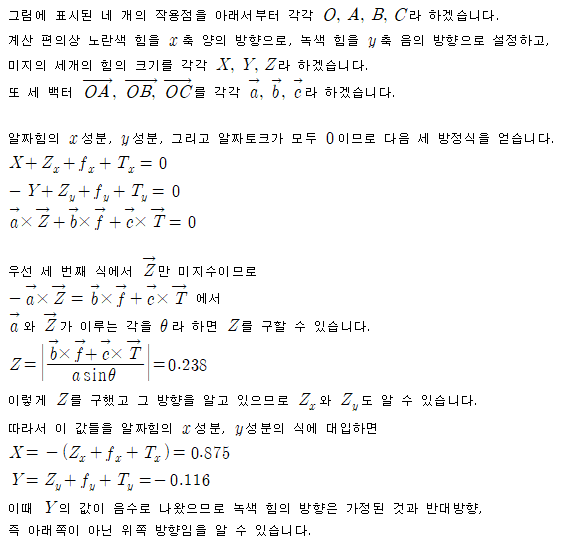 결국 파란색 힘도 방향은 알고 있으나 크기는 아직 모르니 구해야 합니다.