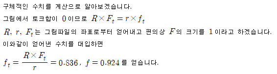 F_t 를 구하면 알짜토크가 0 이라는 사실로부터 f_t 를 구할 수 있고,